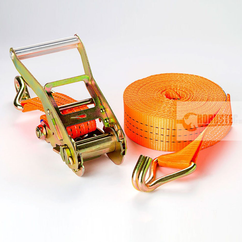 Produzida em material 100% poliéster, que garante menor absorção de água. Utilizado para amarração de cargas como implementos agrícolas, geradores, caminhões entre outros. Gancho e Catraca em Aço Bicromatizado.