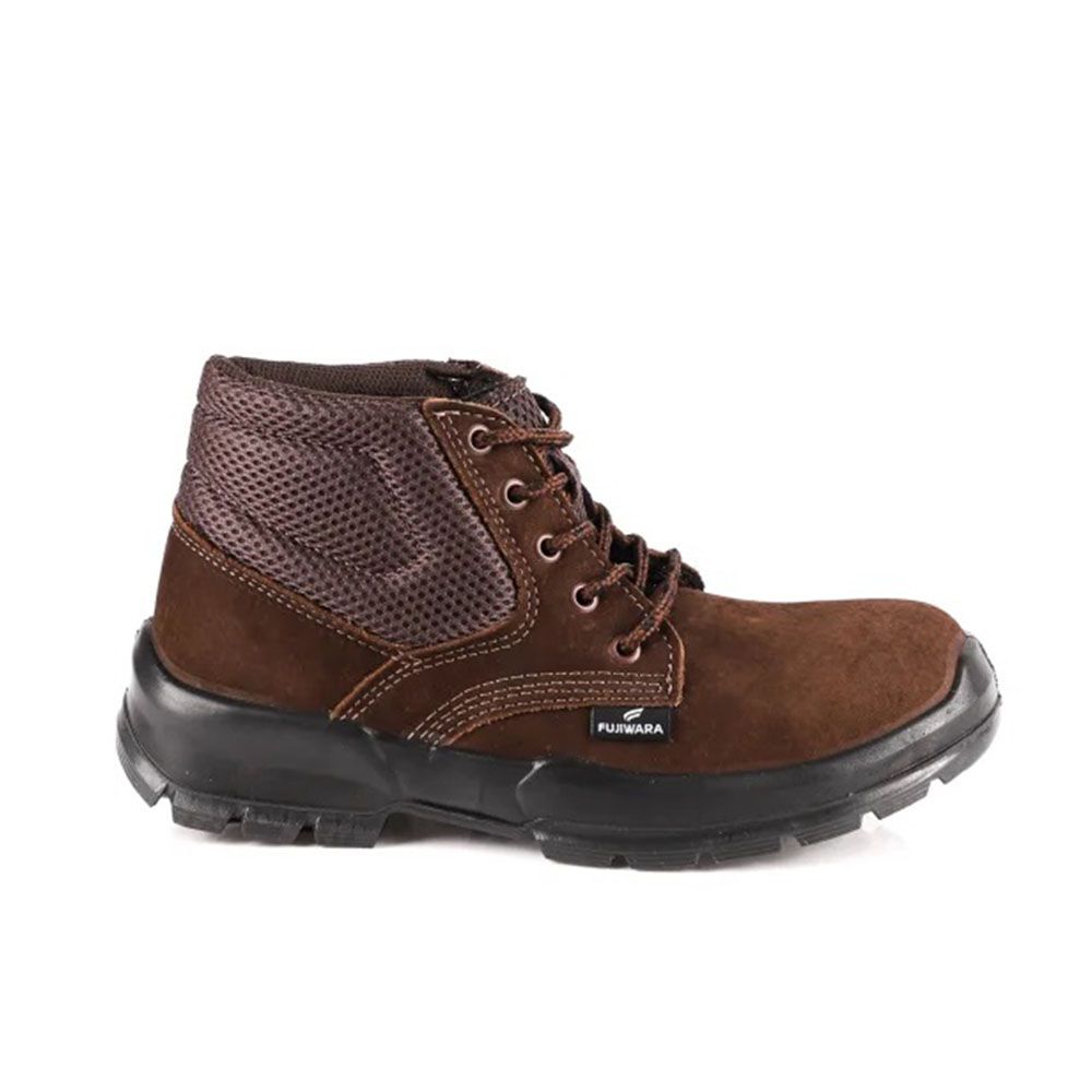 Bota ocupacional com fechamento em cadarço confeccionada em couro nobuck, com colarinho acolchoado, forração interna da gáspea, biqueira plástica conformada, sobrepalmilha em EVA soft e solado poliuretano (PU) bidensidade.