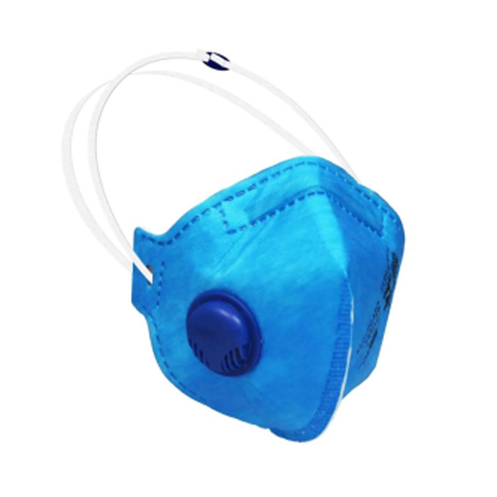 Respirador purificador de ar tipo peça semifacial filtrante para partículas, classe PFF2 (S) com válvula. Formato dobrável.