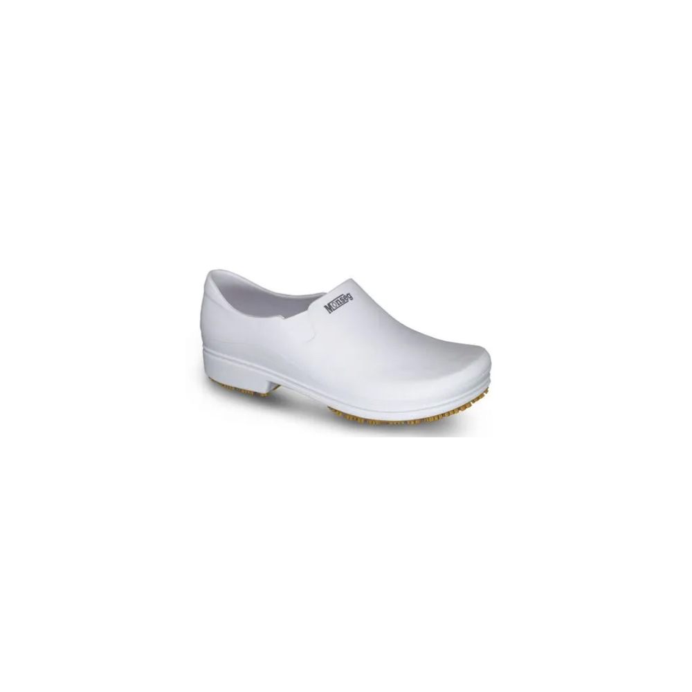 Sapato antiderrapante de uso profissional confeccionado à base de TPE (Elastômero/Borracha Termoplástica), com alta resistência à rasgamento, tração, flexão, contra risco de escorregamento e à sujidade (não encarde), solado em borracha natural, oferecendo total proteção ao usuário nos mais adversos ambientes de trabalho.